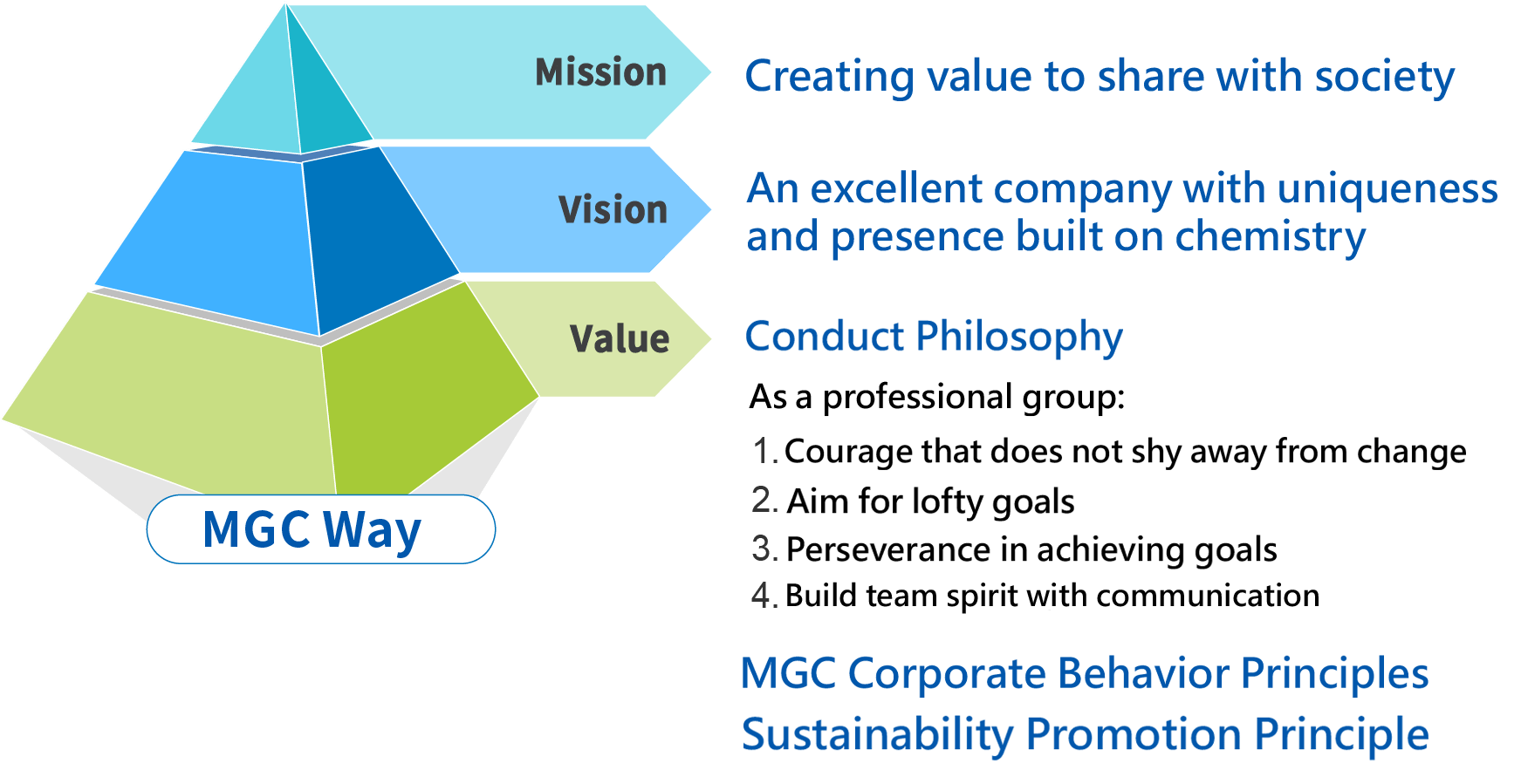 Under our philosophy system, the “MGC Way”, the MGC Group will work to balance economic and social value, and to contribute to realizing a sustainable society.